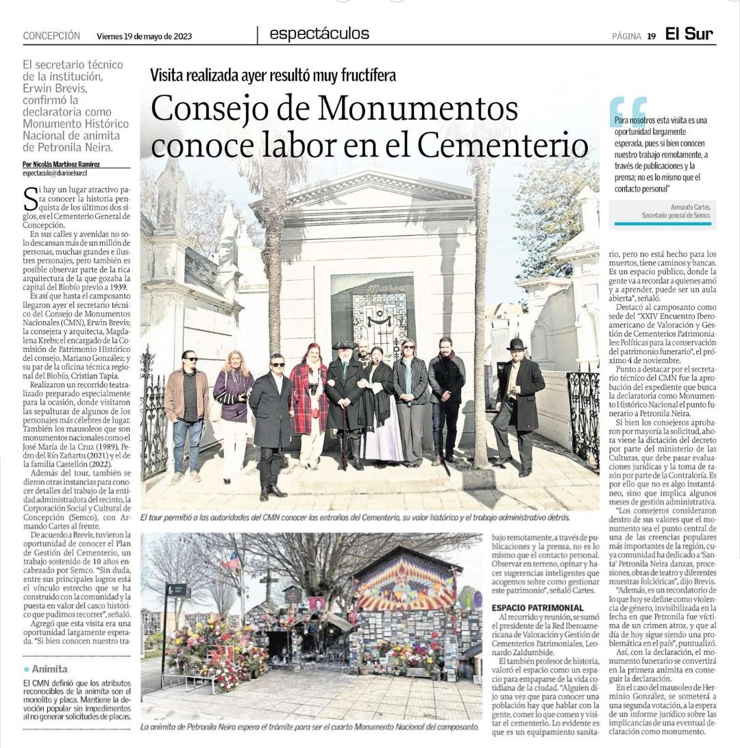 En 2019, la Corporación Social y Cultural de Concepción – SEMCO, en conjunto con la Ilustre Municipalidad de Concepción, impulsaron la idea de declarar la tumba de Petronila como Monumento Nacional.