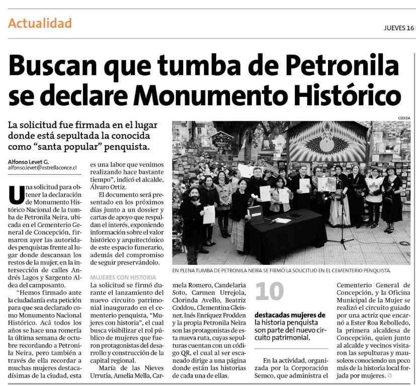 Si bien Petronila no es un “personaje histórico” tradicional, su brutal deceso llamó la atención en la época y ha traspasado generaciones, e incluso se convirtió en una figura de devoción popular en Concepción.