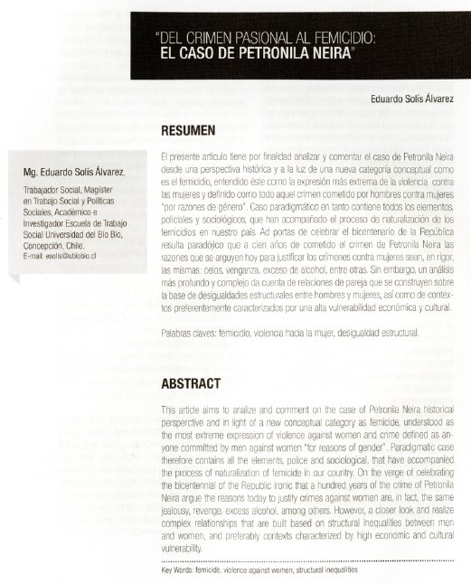 «Del crimen pasional al femicidio: el caso de Petronila Neira». Eduardo Solís Álvarez.