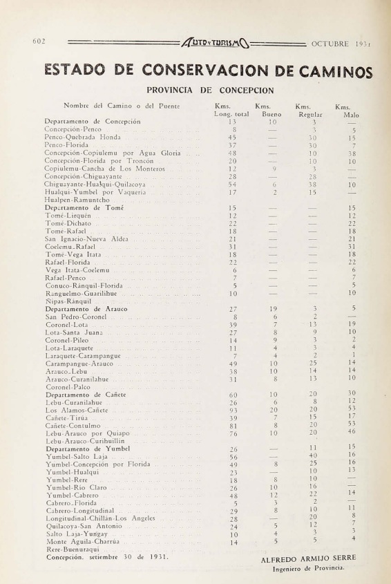 En las primeras décadas de 1900, se evidenció la necesidad de mejorar la conectividad, por lo que alrededor de 1920, durante el gobierno de Carlos Ibáñez del Campo, se comenzó a construir los puentes que aún se mantienen en funciones, tarea a largo plazo llevada a cabo por el arquitecto Domingo Arteaga y su hijo. El camino no llegó solo hasta Florida, sino que se extiende por Quillón hasta llegar a Bulnes, todo esto partiendo desde Palomares